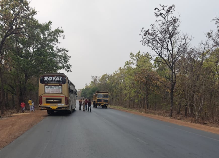 भानपुरी थाना क्षेत्र में नेशनल हाईवे 30 पर भीषण हादसा, रॉयल बस ने टाटा टियागो को मारी टक्कर