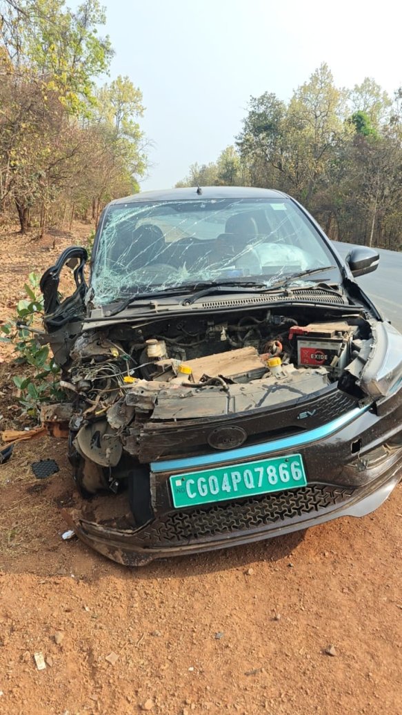 भानपुरी थाना क्षेत्र में नेशनल हाईवे 30 पर भीषण हादसा, रॉयल बस ने टाटा टियागो को मारी टक्कर