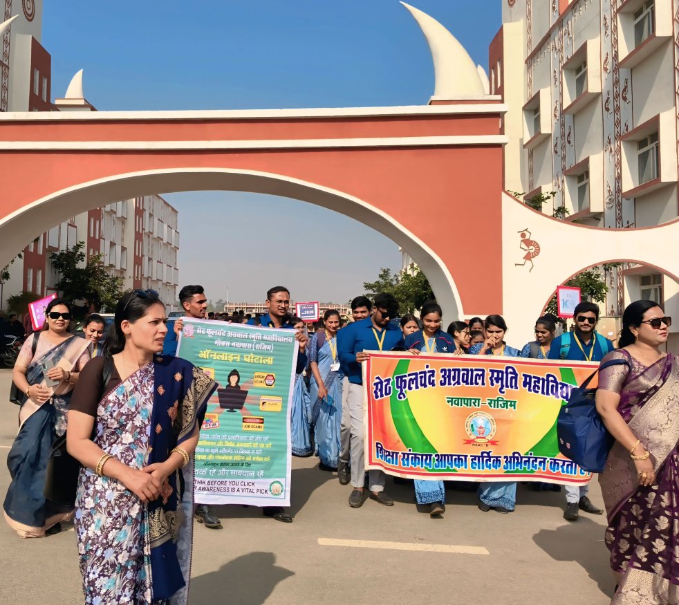 इसके साथ ही साइबर अपराध पर नुक्कड़ नाटक कर जागरूकता रैली निकाली गई। साइबर अपराध (Cyber Crime) एक ऐसा कानूनी अपराध है, जो कंप्यूटर, नेटवर्क और इंटरनेट जैसे डिजिटल उपकरणों का उपयोग करके किया जाता है, जिसमें हैकिंग, फ़िशिंग, मैलवेयर हमले, पहचान की चोरी और ऑनलाइन धोखाधड़ी जैसी गतिविधियाँ शामिल है, जिससे वित्तीय नुकसान, डेटा हानि और प्रतिष्ठा को नुकसान होता है। इससे बचने के लिए साइबर सुरक्षा और जागरूकता बहुत ज़रूरी है। नुक्कड़ नाटक में पूनम देवी, ऐश्वर्या साहू, जीतेश्वरी, आरती, साक्षी सिन्हा, शिवा, जानू जॉनसन, दीपक साहू इत्यादि ने प्रस्तुति दी।