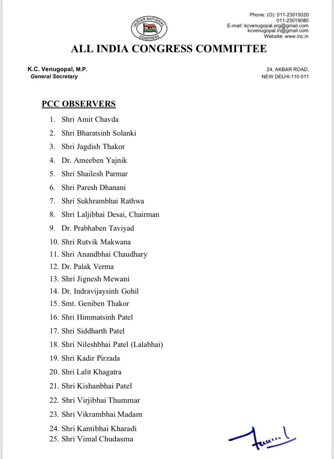 दिल्ली -AICC की अहमदाबाद मे हुई अधिवेशन के बाद कांग्रेस मे नई ऊर्जा का संचार होना शुरू हो चूका है गुजरात का क़िला भेदने के लिए कांग्रेस पार्टी ने AICC की ओर से 43 ऑब्ज़र्वर और गुजरात कांग्रेस के 182 नेताओं को ऑब्ज़र्वर नियुक्त किया।ये सभी नेता संगठन सृजन अभियान के तहत जिला अध्यक्षों की नियुक्ति का काम करेंगे।जिम्मेदारों से चर्चा मे बताया कांग्रेस मे कई बदलाव अब देखने को मिलेंगे सम्पूर्ण भारत देश मे एक नए ऊर्जा नए जोश के साथ कार्यकर्ताओं को पार्टी ताकत देगी।